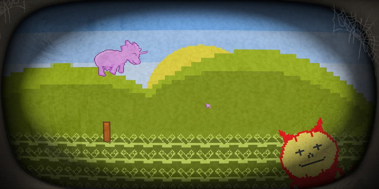 I’ve honestly tried my best to avoid specifics wherever possible, but please be aware that the mildest of spoilers are contained within. Pony Island begins as something reminiscent of a throwaway amateur project lurking deep within the annals of the Android Play Store. A sickly-sweet introduction menu leads into an inane initial episode, as you make use of a simplistic tap-to-jump mechanic in order to guide a pixelated pony over small gates and through to a victory flag.